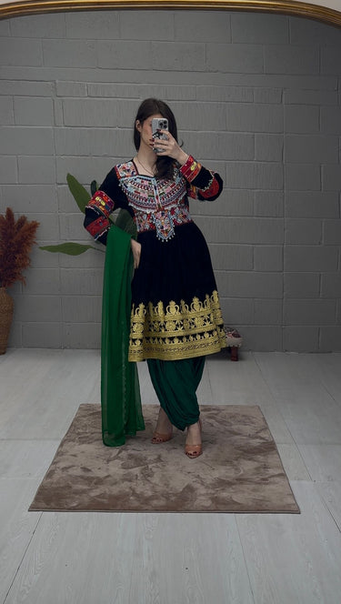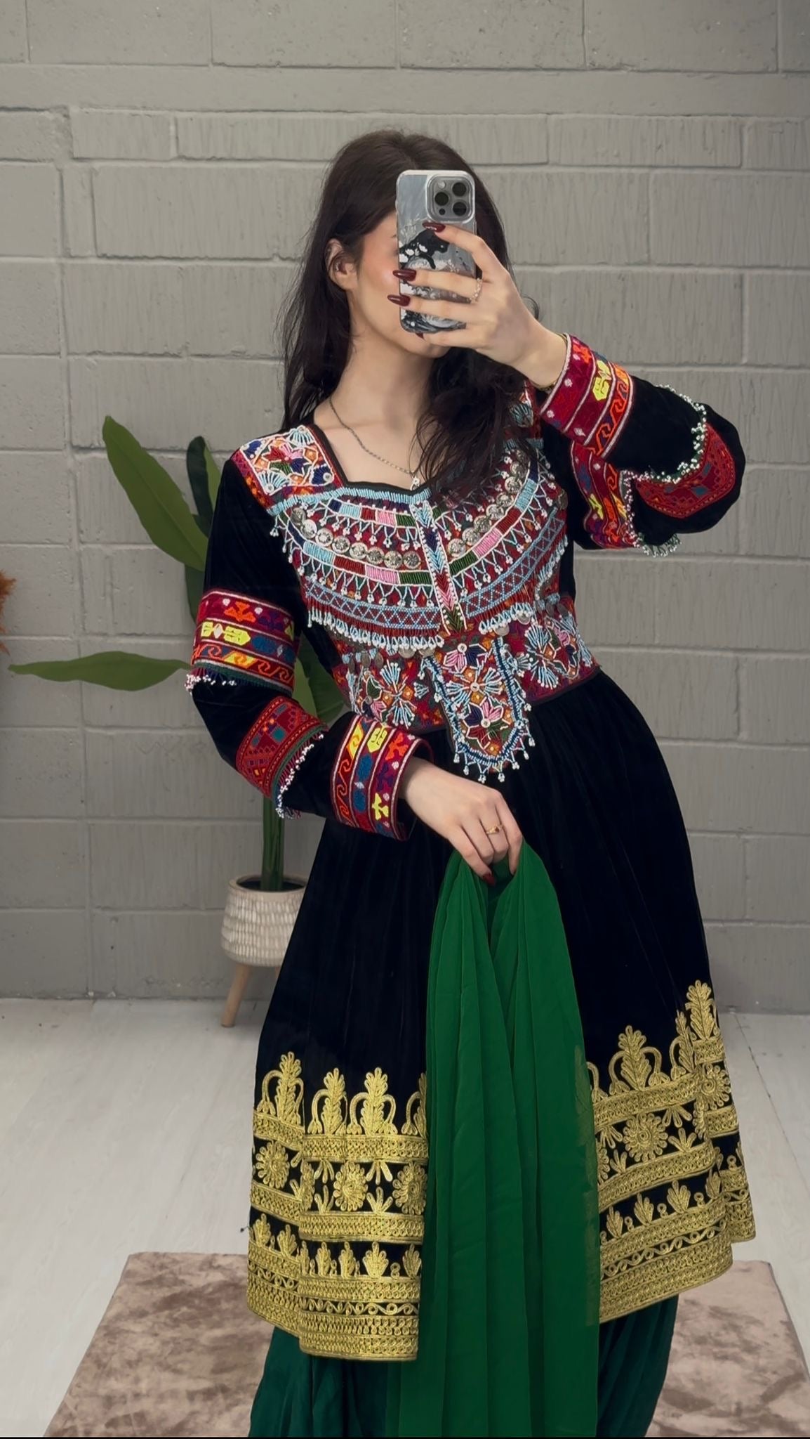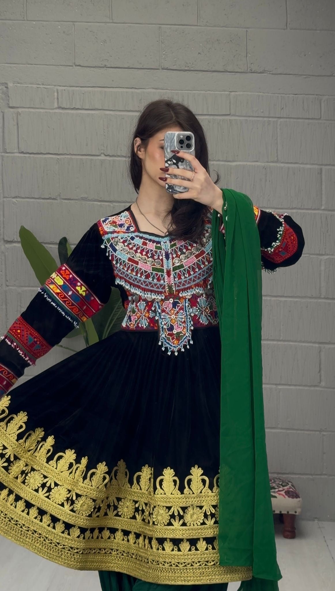 green gebbi trousers and scarf