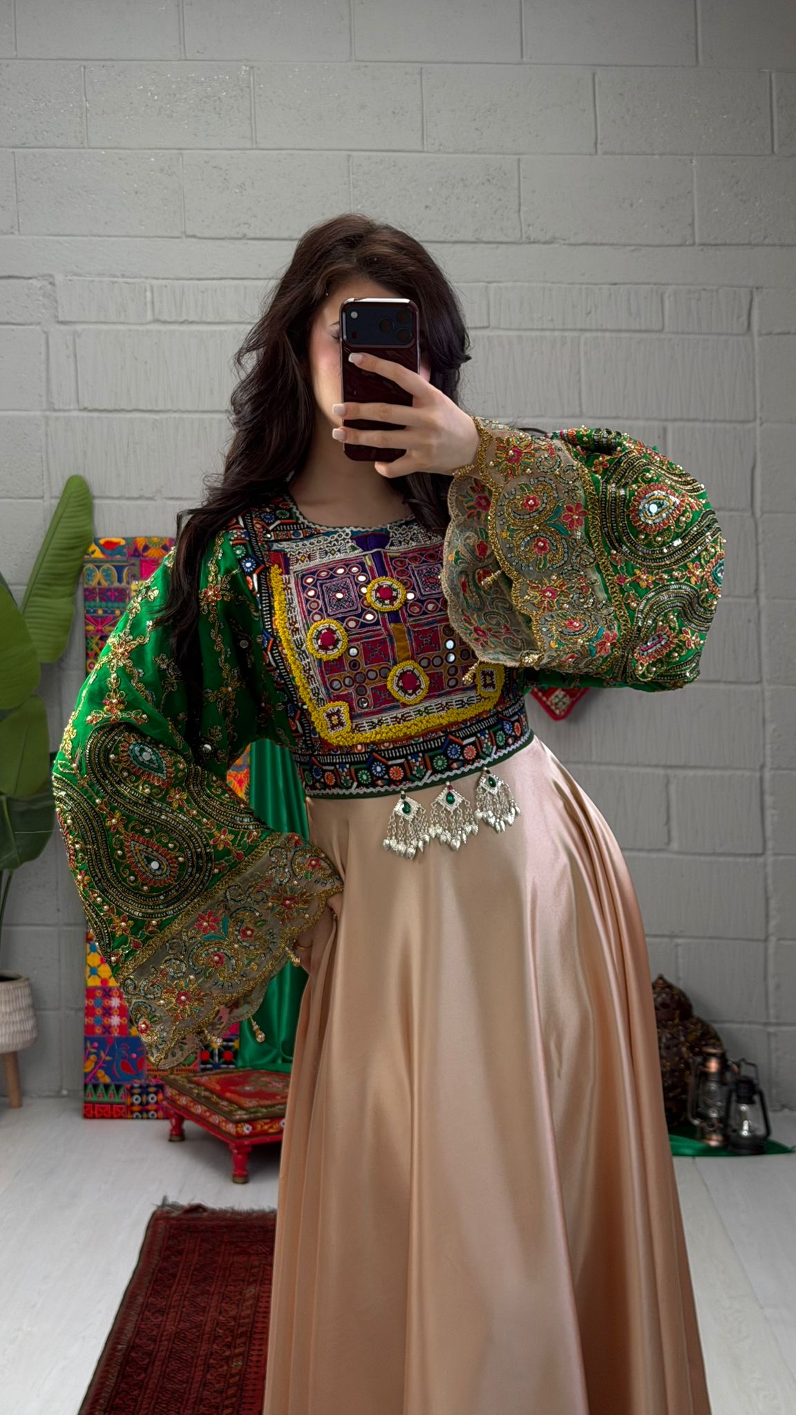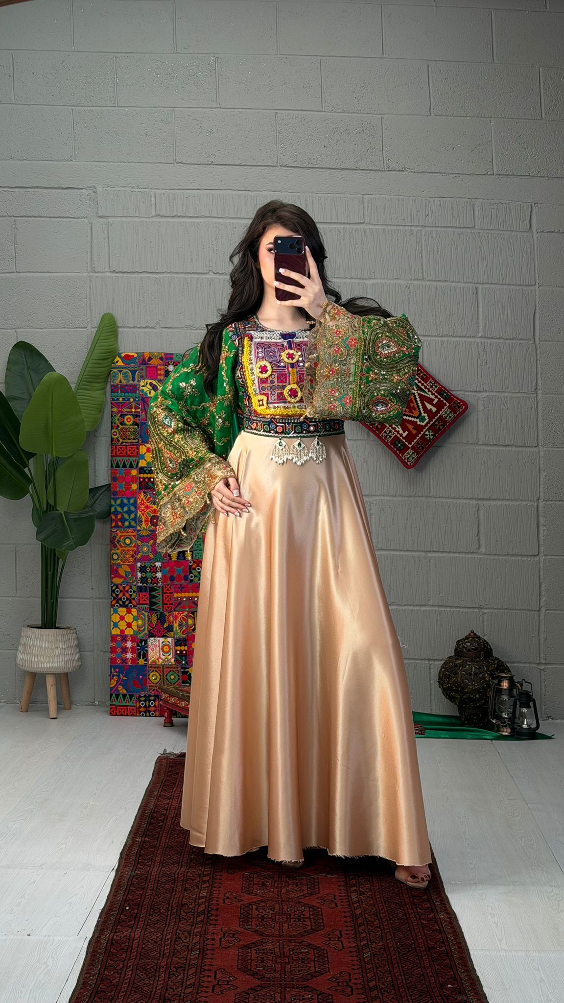 The Qamar garment features a satin back zip and a side belt, ensuring a secure fit and ease of wear. The satin material enhances comfort while providing a refined aesthetic. This combination of features allows for versatile styling, suitable for both formal and casual occasions.