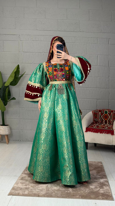 The Rubaab is crafted from premium Banarasi fabric, featuring intricate handmade chest embroidery. Its high-quality materials ensure durability, while the back zipper offers secure closure. The adjustable side belt allows for a customized fit, enhancing both comfort and style in any setting.